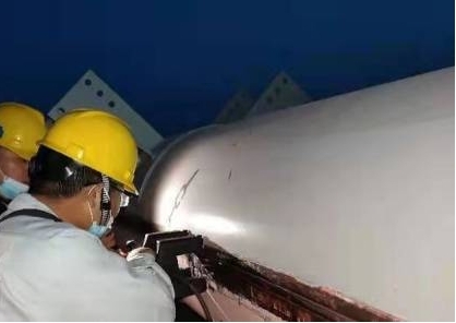 近日,化工行業(yè)事業(yè)部接到省內(nèi)某化工企業(yè)一批進(jìn)口設(shè)備監(jiān)檢任務(wù),該類設(shè)備容積大,參數(shù)高,介質(zhì)易燃易爆,是一種特殊結(jié)構(gòu)的壓力容器。接到檢驗(yàn)任務(wù)后,化工行業(yè)事業(yè)部抽調(diào)人員組成檢驗(yàn)小組,根據(jù)企業(yè)提供的資料制定詳細(xì)檢驗(yàn)方案,依據(jù)檢驗(yàn)標(biāo)準(zhǔn)精心準(zhǔn)備檢驗(yàn)設(shè)備,奔赴檢驗(yàn)現(xiàn)場(chǎng)。由于設(shè)備結(jié)構(gòu)特殊,體積較大,一臺(tái)設(shè)備測(cè)厚點(diǎn)就有316個(gè)之多,需要進(jìn)行無損檢測(cè)的焊縫有14條,相當(dāng)于4臺(tái)塔器的檢驗(yàn)量,由于企業(yè)安裝工期較緊,檢驗(yàn)人員從清晨進(jìn)場(chǎng)開始檢驗(yàn),中午也顧不上休息,頂著炎炎烈日繼續(xù)檢驗(yàn),一直加班到晚上九點(diǎn),歷時(shí)兩天完成了這批進(jìn)口設(shè)備的檢驗(yàn)任務(wù),并發(fā)現(xiàn)缺陷一處,消除了重大安全隱患。