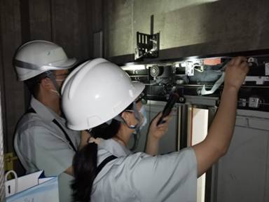 機(jī)電分公司檢驗(yàn)人員深夜開(kāi)展電梯安全評(píng)估工作