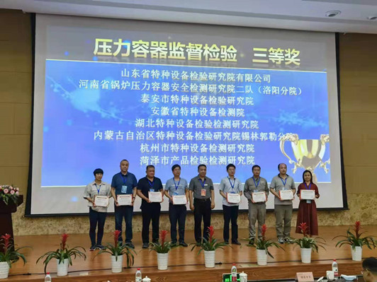在比對過程中,我公司檢驗(yàn)人員在檢驗(yàn)方案編制、個(gè)人安全防護(hù)、檢測前準(zhǔn)備、檢驗(yàn)過程要點(diǎn)、檢驗(yàn)后處理、報(bào)告和原始記錄的填寫等各環(huán)節(jié)中嚴(yán)謹(jǐn)細(xì)致、嚴(yán)格把關(guān),憑借過硬的基本素質(zhì)和精湛的技術(shù)實(shí)力,經(jīng)過兩天緊張激烈的角逐,三項(xiàng)能力比對項(xiàng)目均獲得“滿意”結(jié)果,并在39支參與壓力容器制造監(jiān)督檢驗(yàn)的參賽隊(duì)伍中脫穎而出,以排名第7的成績榮獲“壓力容器制造監(jiān)督檢驗(yàn)三等獎(jiǎng)”,為山東特檢品牌再添榮光。